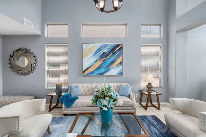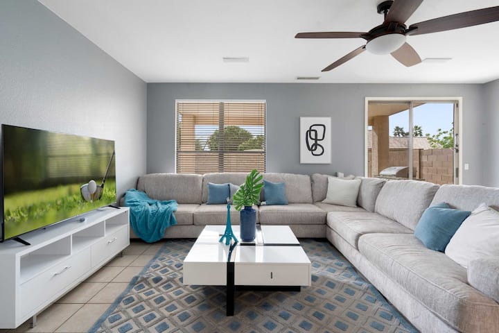 ก้าวเข้ามาในรูปแบบที่สว่างและเปิดโล่งพร้อมพื้นไม้เนื้อแข็งที่สวยงาม แสงธรรมชาติ และสไตล์ที่ดูดีมีสไตล์ในทุกห้อง ห้องครัวของเชฟที่ได้รับการปรับปรุงใหม่มีไอส์แลนด์กลาง ตู้ที่เรียบง่าย และเครื่องใช้ไฟฟ้าระดับพรีเมียม เหมาะสำหรับการทำอาหารหรือการรับรอง หลังอาหารค่ำ ผ่อนคลายในห้องนั่งเล่นที่อบอุ่น หรือท้าผู้เข้าพักคนอื่นๆ เล่นพูลในพื้นที่เล่นเกม ห้องนอนแต่ละห้องมีพื้นที่กว้างขวางและสะดวกสบาย ในขณะที่ห้องน้ำใหม่เอี่ยมเพิ่มความทันสมัย ด้านนอกเพลิดเพลินกับสวนหลังบ้านส่วนตัวของคุณพร้อมสระว่ายน้ำระยิบระยับและที่นั่งมากมายสำหรับการพักผ่อนภายใต้แสงแดดแอริโซนา