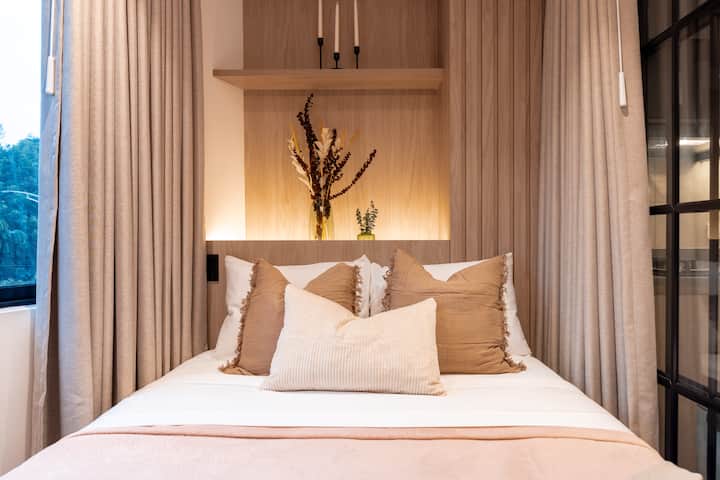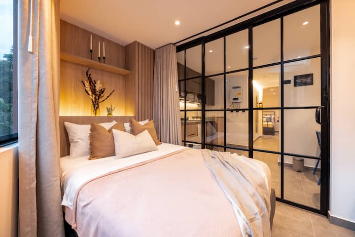 อพาร์ทเมนท์ใหม่ 304 ใกล้สนามกีฬา มีแสงสว่างและเครื่องปรับอากาศ