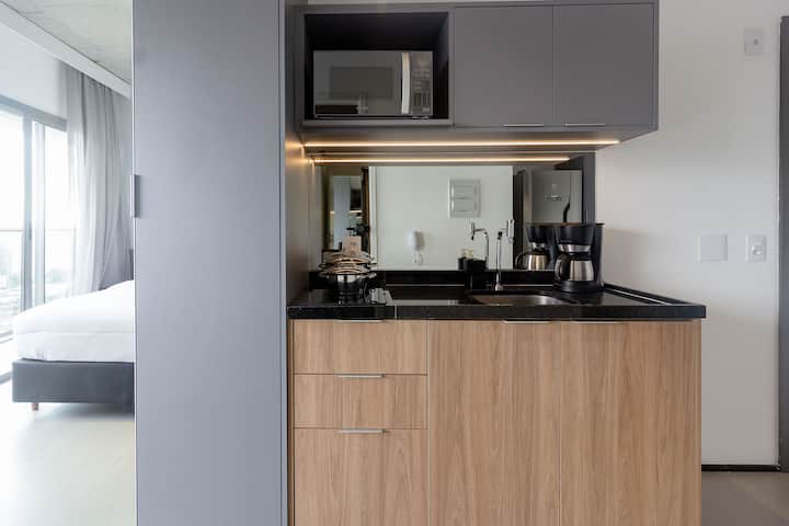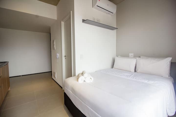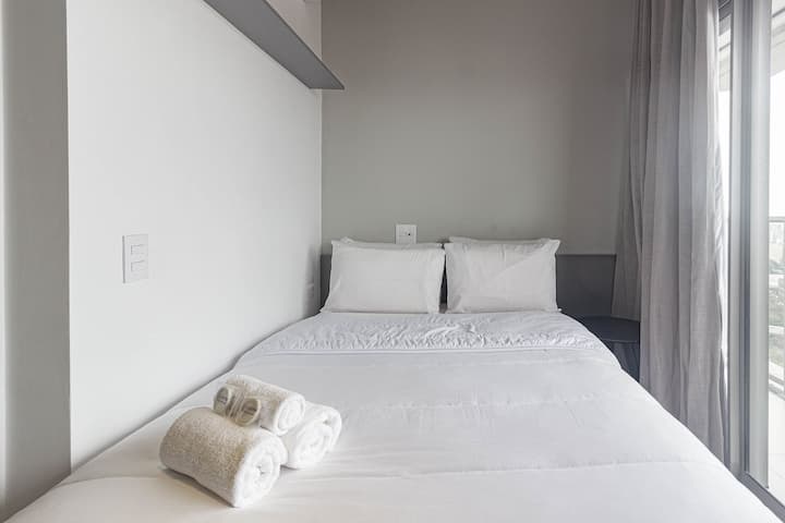 อพาร์ทเมนท์ชั้นสูงใกล้กับถนนเปาลิสตา พร้อมเครื่องปรับอากาศ