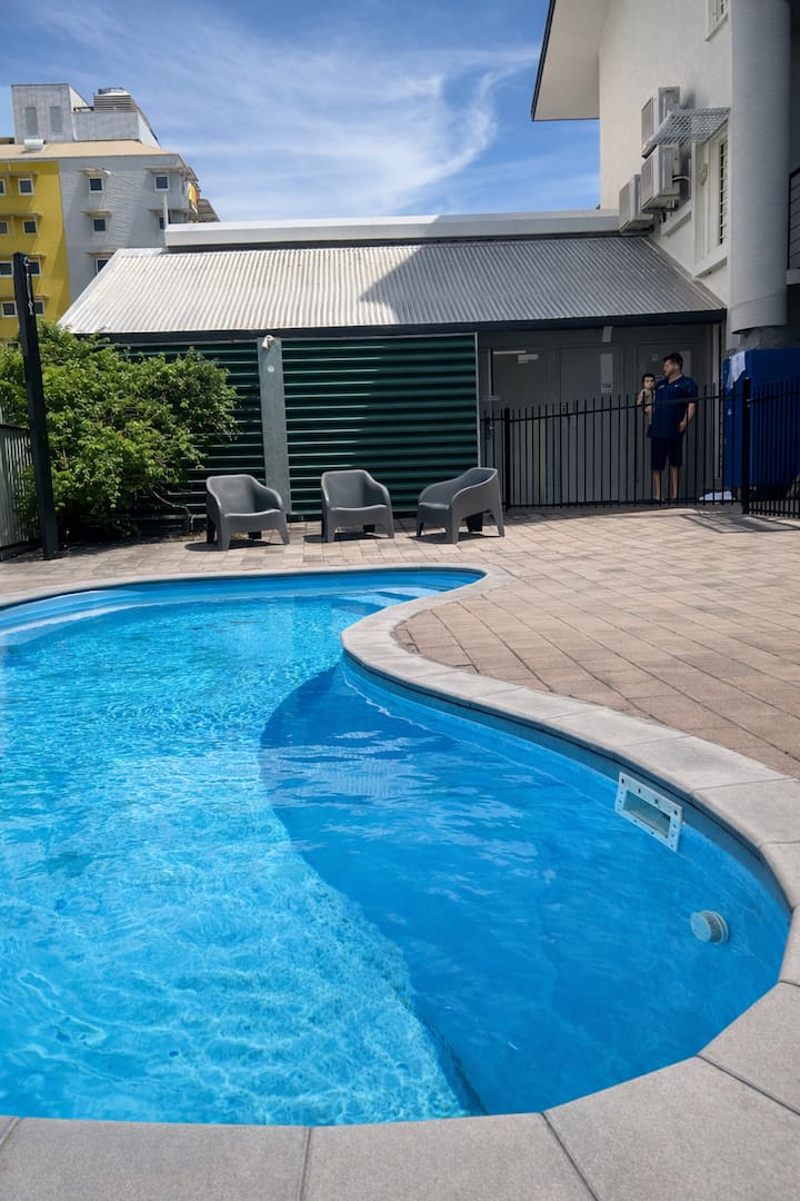 นี่เป็นหนึ่งในที่พักไม่กี่แห่งของย่านนี้ที่มีสระว่ายน้ำ