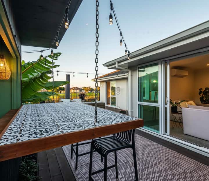 - บ้านพักตากอากาศที่มีที่นั่งกลางแจ้งใน นิวซีแลนด์
