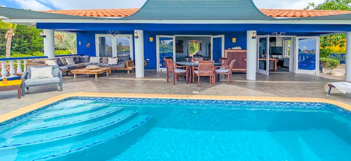 วิลล่าบลูลากูนเป็นวิลล่าคาริบเบียนที่มีสไตล์ตั้งอยู่ในชุมชนคอรัลเอสเตทที่มีรั้วรอบคูราเซา