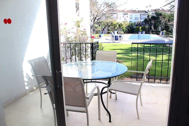 อพาร์ทเมนท์ชั้นล่างพร้อมวิวสวน