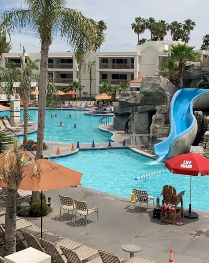 สัมผัสประสบการณ์ห้องนอน 1 ห้องพร้อมห้องนั่งเล่น ห้องน้ำส่วนตัว และห้องครัวที่รองรับผู้เข้าพักได้ 4 คน ตั้งอยู่ในปาล์มสปริงส์ ขับรถไม่นานก็ถึงตัวเมือง ผู้เข้าพักสามารถเพลิดเพลินกับสระว่ายน้ำ 2 สระที่มีสไลเดอร์และสปาอาบน้ำวนสไตล์ถ้ำ