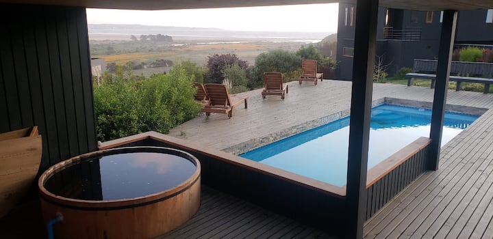 บ้านตุนเคนที่มองเห็นวิวทะเล สระว่ายน้ำ และห้องทำอาหาร