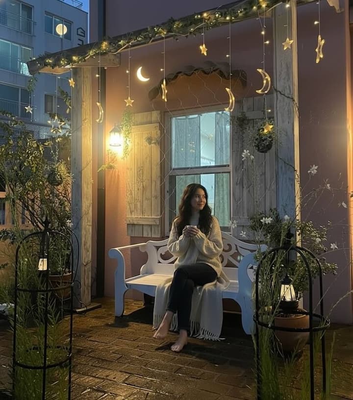 ในช่วงกลางวันเพลิดเพลินกับชาสักถ้วยที่ระเบียงกลางแจ้ง ในเวลากลางคืน มารวมตัวกันใต้แสงไฟระยิบระยับเพื่อปาร์ตี้บาร์บีคิวและชมภาพยนตร์