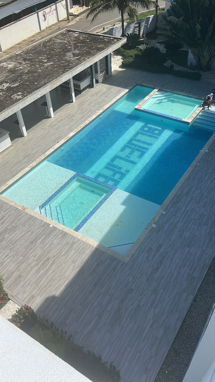 นี่เป็นหนึ่งในที่พักไม่กี่แห่งของย่านนี้ที่มีสระว่ายน้ำ
