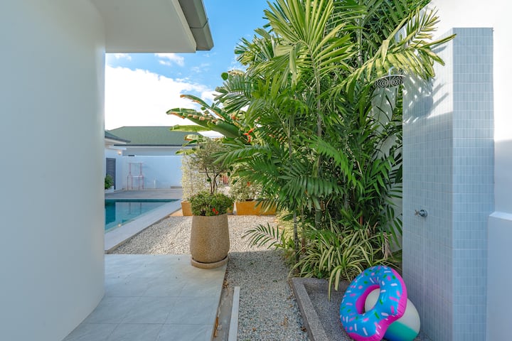 🌴 พูลวิลล่าทรอปิคอล 3 ห้องนอนพร้อมสวนและบาร์บีคิว – ราไวย์ ภูเก็ต ☀️