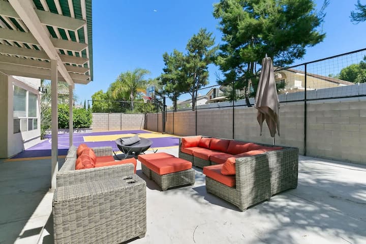 สำหรับผู้ที่ชื่นชอบกีฬาสนามบาสเก็ตบอลส่วนตัวรอคุณอยู่และคนสามคน ท้าทายเพื่อนๆให้จับคู่ที่เป็นมิตรหรือเพียงแค่เพลิดเพลินกับการยิงห่วงท่ามกลางแสงแดด โอเอซิสหลังบ้านมีเฟอร์นิเจอร์อบอุ่นเหมาะสำหรับการรับประทานอาหารกลางแจ้งหรือช่วงบ่ายที่ขี้เกียจด้วยหนังสือดีๆ