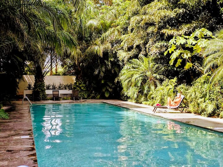 นี่เป็นหนึ่งในที่พักไม่กี่แห่งของย่านนี้ที่มีสระว่ายน้ำ