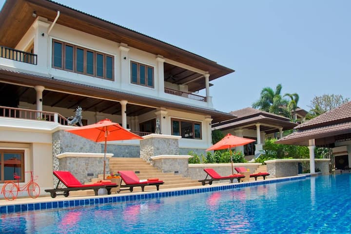 นี่เป็นวิลล่าขนาดใหญ่ที่มีพื้นที่ใช้สอยกว้างขวางและห้องนอนในตัว 5 ห้อง