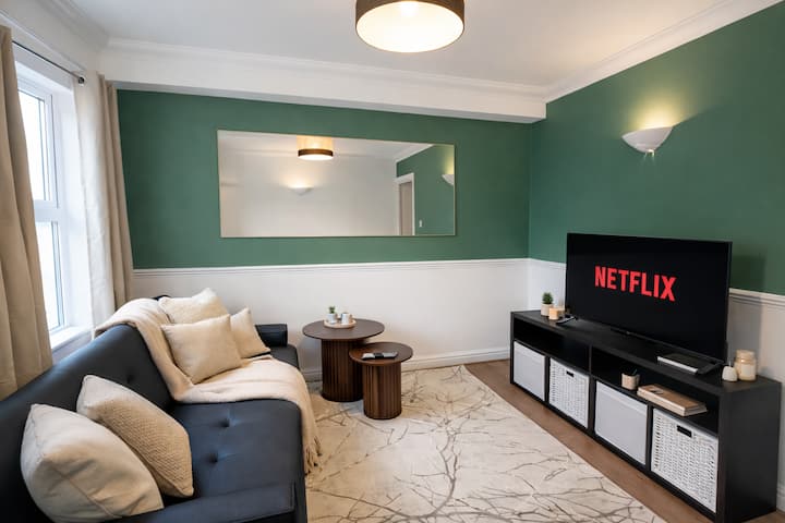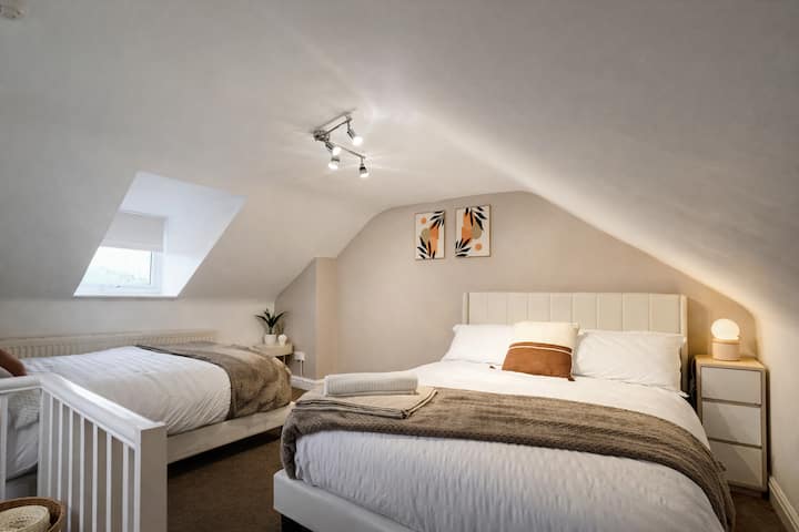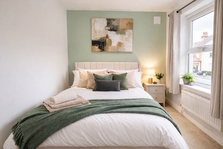บ้านกว้างขวางเหมาะสำหรับครอบครัว กลุ่ม และผู้รับเหมา นอนได้สูงสุด 8 คนใน 3 ห้องนอนและเตียงโซฟาพร้อมเลานจ์ที่สบายและห้องครัวที่มีอุปกรณ์ครบครัน เพลิดเพลินกับ Wi-Fi ที่รวดเร็ว เครื่องนอนผ้าฝ้าย 100% ผ้าเช็ดตัวสะอาดและสิ่งของจำเป็นสำหรับการเข้าพักระยะยาว รวมที่จอดรถฟรีพร้อมโรงจอดรถ + ที่จอดรถนอกถนน เชื่อมต่อกับสิ่งอำนวยความสะดวกในท้องถิ่นและเส้นทางสำคัญสำหรับการเดินทางเพื่อธุรกิจหรือการพักผ่อนของครอบครัวได้ดีเยี่ยม ทำเลที่ตั้งดีเยี่ยม เดินเล่นไปใจกลางเมืองเรดดิงได้ไม่นานและเดินเพียงไม่กี่นาทีถึงโรงพยาบาลรอยัลเบิร์กเชียร์