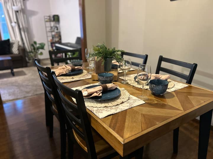 ห้องรับประทานอาหารเฉพาะได้รับการออกแบบมาเพื่อการรับประทานอาหารที่ง่ายและสนุกสนาน ไม่ว่าคุณจะแบ่งปันอาหารค่ำโฮมเมด จัดงานเฉลิมฉลองพิเศษ หรือทำงานบนแล็ปท็อปและกาแฟยามเช้าด้วยกัน พื้นที่รับประทานอาหารมีที่นั่งสำหรับทั้งกลุ่มของคุณและอยู่ใกล้กับห้องครัว ทำให้การเตรียมอาหารและการเสิร์ฟอาหารรู้สึกเป็นธรรมชาติและสะดวกสบาย