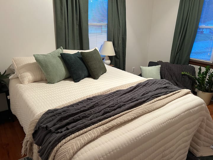 ห้องนอน 2 (ห้องควีน): ห้องนอนควีนอีกห้องที่ให้ความสะดวกสบายและความสงบในระดับเดียวกัน ห้องพักนี้เหมาะสำหรับสมาชิกในครอบครัวเพิ่มเติม เพื่อน หรือผู้เข้าพักที่ชื่นชอบที่พักที่เงียบสงบและผ่อนคลายหลังจากสำรวจแคนซัสซิตีมาทั้งวัน