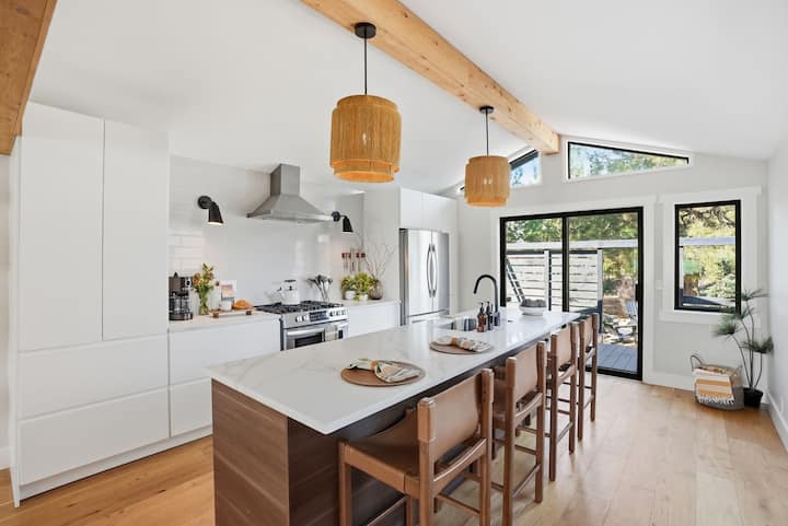 ไร่สไตล์โมเดิร์นยุคกลางที่ได้รับการปรับปรุงใหม่ทั้งหมดแห่งนี้ตั้งอยู่บนพื้นที่เกือบครึ่งเอเคอร์บนพื้นที่เกือบครึ่งเอเคอร์บนถนนด้านตะวันตกของเบนด์ห่างจากแม่น้ำ Deschutes ร้านอาหารที่ได้รับคะแนนสูงเส้นทางท้องถิ่นและภูเขาเพียงไม่กี่นาที สกีรีสอร์ทสำหรับคนโสดนอนได้ 8 คนจาก 3 ห้องนอน (รวมถึงห้องสองชั้น) แช่ตัวในอ่างน้ำร้อน 6 คนใหม่ล่าสุดและมารวมตัวกันที่จุดไฟในสวนหลังบ้านส่วนตัวของคุณ มีจักรยานฟรีห้องครัวดีไซเนอร์และทางเดินห่างจากประตูหน้าบ้านเพียงไม่กี่ก้าวนี่คือที่พักตากอากาศเบนด์รัฐออริกอนที่ตรวจสอบทุกช่อง