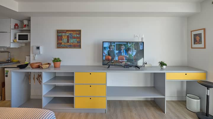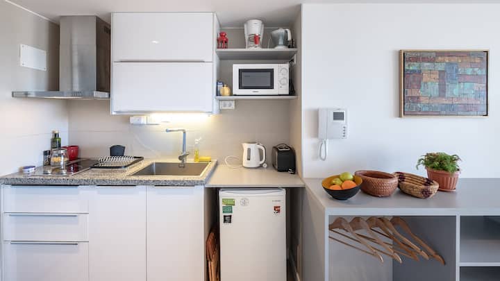 สตูดิโอที่กว้างขวางพร้อมระเบียง ห้องครัว ที่จอดรถ เครื่องปรับอากาศ