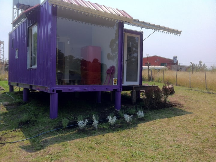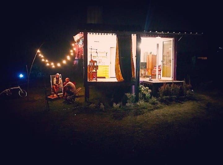 พระอาทิตย์ตกดินในตู้คอนเทนเนอร์บ้านที่เป็นมิตรกับสิ่งแวดล้อม