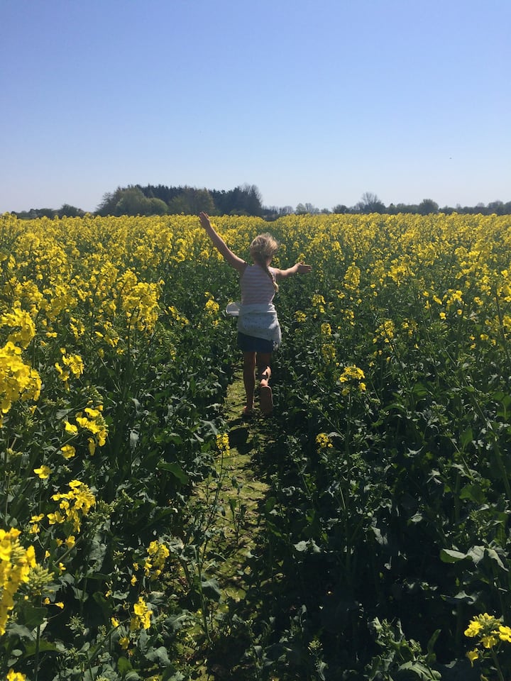 เตียงและห้องครัวในบรรยากาศชนบท