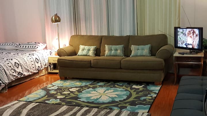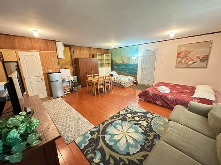 สตูดิโอส่วนตัวขนาดใหญ่และน่ารักพร้อมทางเข้าส่วนตัว