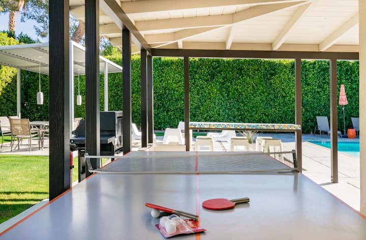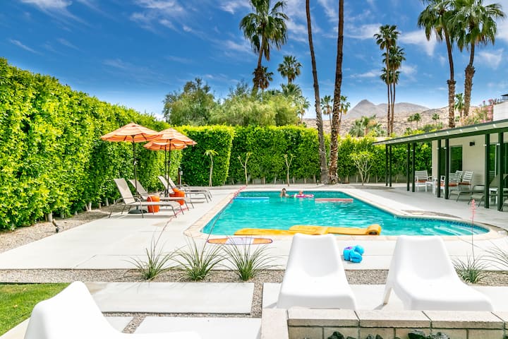 บ้านส่วนตัวหลังนี้ตั้งอยู่บนแฟร์เวย์ที่ 5 ของสนามกอล์ฟเดอะเลเจนด์สซึ่งเป็นหนึ่งในสองสนามกอล์ฟแชมเปี้ยนชิพที่ Tahquitz Creek Golf Resort เจ้าของที่พักใส่ใจทุกอย่างเมื่อปรับปรุงที่พักฟรีสไตล์ยุคกลางนี้ให้กลายเป็นสถานที่พักผ่อนที่สมบูรณ์แบบในปาล์มสปริงส์ บ้าน Popsicle - เป็นเหมือนรีสอร์ทภายในรีสอร์ท - ให้พื้นที่ภายในและภายนอกเป็นพิเศษแฟร์เวย์ที่สร้างแรงบันดาลใจและวิวภูเขาเฟอร์นิเจอร์ระดับไฮเอนด์ดีไซเนอร์เตียงคุณภาพระดับโรงแรมศิลปะที่สดชื่นฮิปและมีชีวิตชีวาพร้อมกับพื้นที่มากมายให้ทั้งกลุ่มของคุณได้พักผ่อนและเพลิดเพลิน