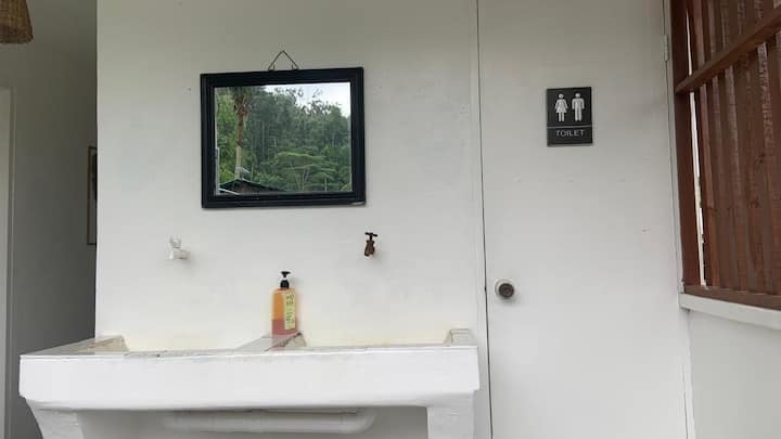 ใช้พื้นที่บางส่วนร่วมกับครอบครัวของโฮสต์และเกสต์รายอื่น