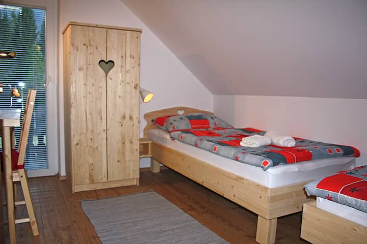 ห้องนอนส่วนตัว ใน เรือนรับรอง ใน Ribčev Laz สโลวีเนีย