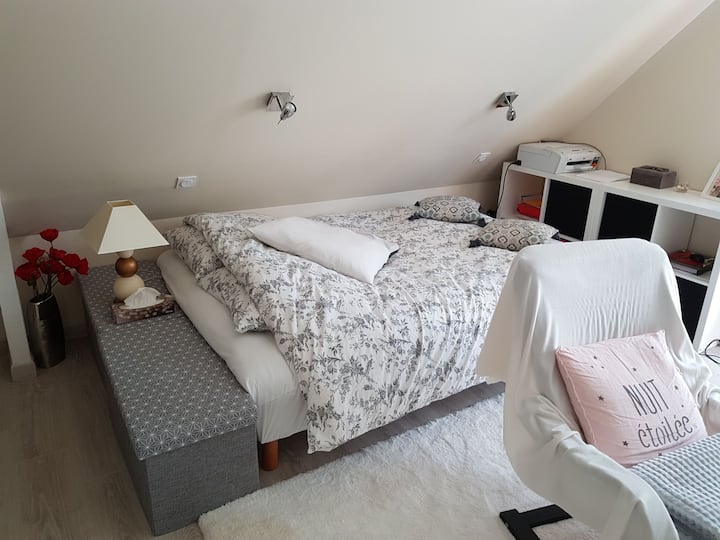 ฉันชอบความสัมพันธ์ ฉันพร้อมที่จะสื่อสาร เราอยู่ในหมู่บ้านที่เงียบสงบในชนบท มีรถในสนามส่วนตัว 10 นาทีจากแซ็งมาลู 10 นาทีจากก็องกาเลและดินาร์ 30 นาทีจากมงแซ็งมิเชล มีเส้นทางเดินป่าใกล้เคียงมากมาย