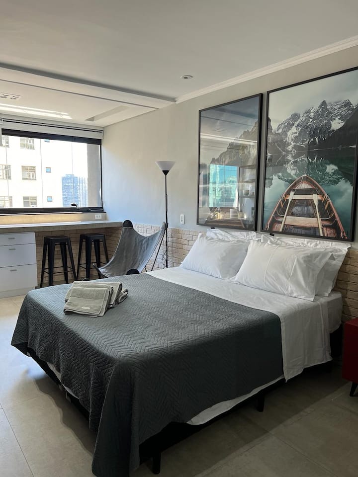 Trabalho com eventos e sei o que é estar fora de casa, longe de minha família. De tanto viajar e ficar hospedado em vospit hotéis ao redor do mundo sei o que uma pessoa deseja quando chega no local que está hospedada após um dia de trabalho. Montei este apto pensando no que preciso quando estou fora da minha casa, trabalhando cada detalhe para que sua estadia seja a mais prazerosa possível.