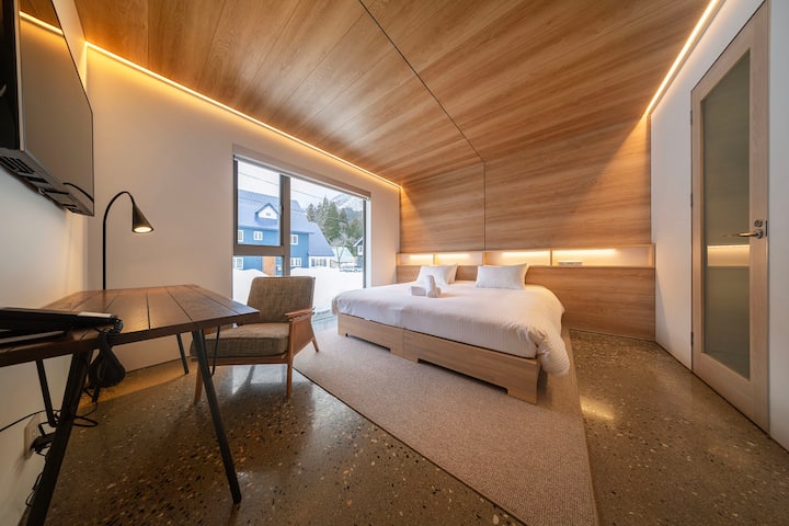 ชาเล่ต์สามารถรองรับผู้เข้าพักได้ 6 คนอย่างสะดวกสบาย ห้องนอนที่มีห้องน้ำในตัว 1 ห้องสามารถปรับเปลี่ยนได้ด้วยเตียงขนาดคิงไซส์หรือเตียงแฝดและมีพื้นที่สำหรับเตียงเด็กอ่อนหากต้องการ อีก 2 ห้องนอนบนชั้นสองยังสามารถติดตั้งเตียงขนาดคิงไซส์หรือเตียงแฝดได้ เรามีชาเล่ต์เพื่อนบ้านที่มีรูปแบบเดียวกับที่สามารถรองรับผู้เข้าพักได้อีก 6 คนหากคุณต้องการพื้นที่เพิ่มเติม