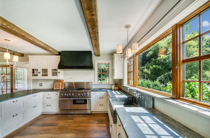 ที่พักสุดพิเศษสำหรับครอบครัวในมอนทอก: อ่างน้ำร้อน ห้องครัวมืออาชีพ เตาผิง