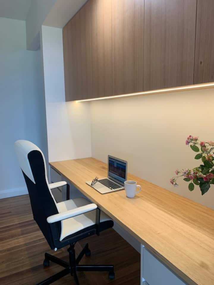หัวใจของที่พักของเราคือห้องครัวใหม่เอี่ยมที่ประดับประดาด้วยหน้าต่างที่งดงามและกว้างขวางซึ่งมีวิวที่น่าทึ่งของ Wilsons Promontory ลองจินตนาการว่าตัวเองกำลังอาบแดดอย่างรุ่งโรจน์ในขณะที่คุณเตรียมอาหารที่น่ารื่นรมย์สำหรับตัวคุณเองและคนที่คุณรัก และนั่นไม่ใช่ทั้งหมด! เราได้เพิ่มดาดฟ้าที่สวยงามที่ล้อมรอบหน้าบ้านเพื่อเชิญชวนให้คุณดื่มด่ำกับความเงียบสงบของสภาพแวดล้อม