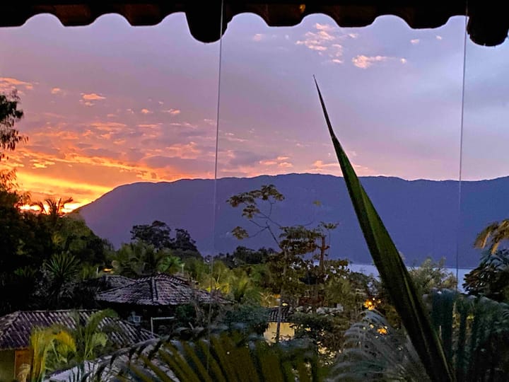 บ้านที่ปฏิบัติจริงและอบอุ่นผสมผสานกับภูมิทัศน์ท้องถิ่นในชุมชนที่มีประตูกั้นทางเข้าใน Ilhabela