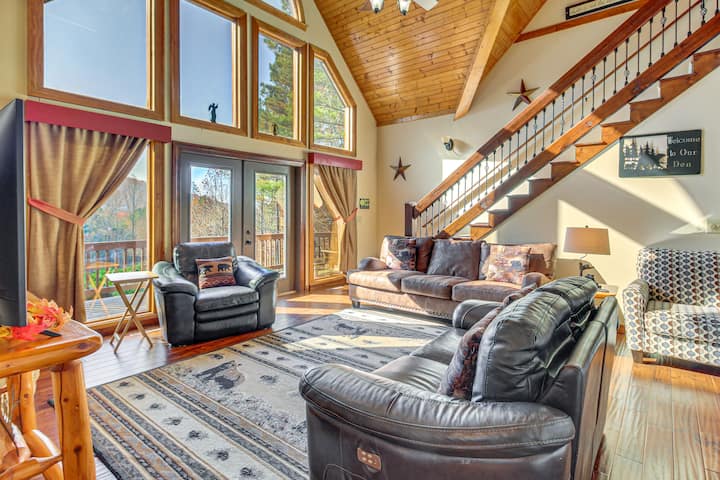 อ่างน้ำร้อน โต๊ะเกม และวิวภูเขา: เอลลิเจย์เคบิน