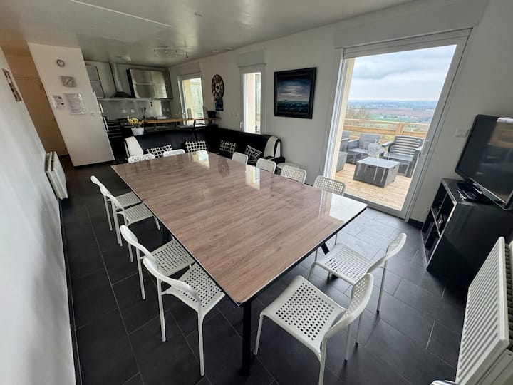 เพลิดเพลินกับวิวหุบเขาอันงดงาม มีโต๊ะสูง (67 ซม. x 201 ซม.) มี 8 ที่นั่ง