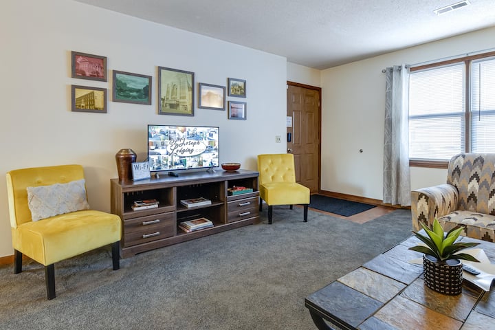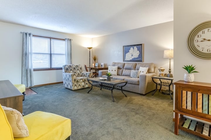 บ้าน 2 ห้องนอนที่มีเสน่ห์นี้ตกแต่งอย่างสวยงามและมีสิ่งอำนวยความสะดวกที่ยอดเยี่ยมมากมายรวมถึงเครื่องเรือนและเครื่องใช้ไฟฟ้าที่มีสไตล์ (เตาไฟฟ้า เครื่องล้างจาน ตู้เย็น ไมโครเวฟ เครื่องซักผ้า/เครื่องอบผ้า ฯลฯ) ที่พักตั้งอยู่ห่างจากทางหลวงเบลต์ไม่ไกลใกล้กับทางหลวง I-29 และ 36 คุณจะรักที่พักของฉันเพราะความสะดวกสบาย ความสะอาด สิ่งอำนวยความสะดวก ถนนที่เงียบสงบ ที่จอดรถนอกถนน ฯลฯ