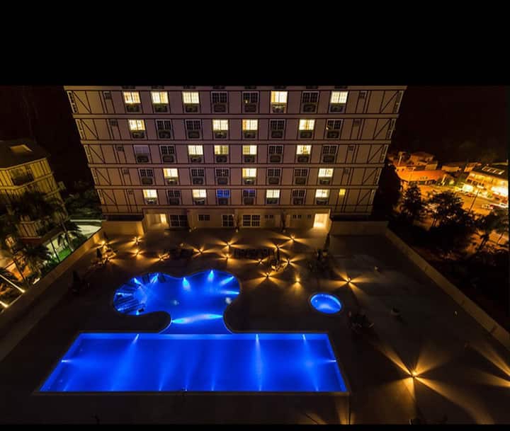 นี่เป็นหนึ่งในที่พักไม่กี่แห่งของย่านนี้ที่มีสระว่ายน้ำ