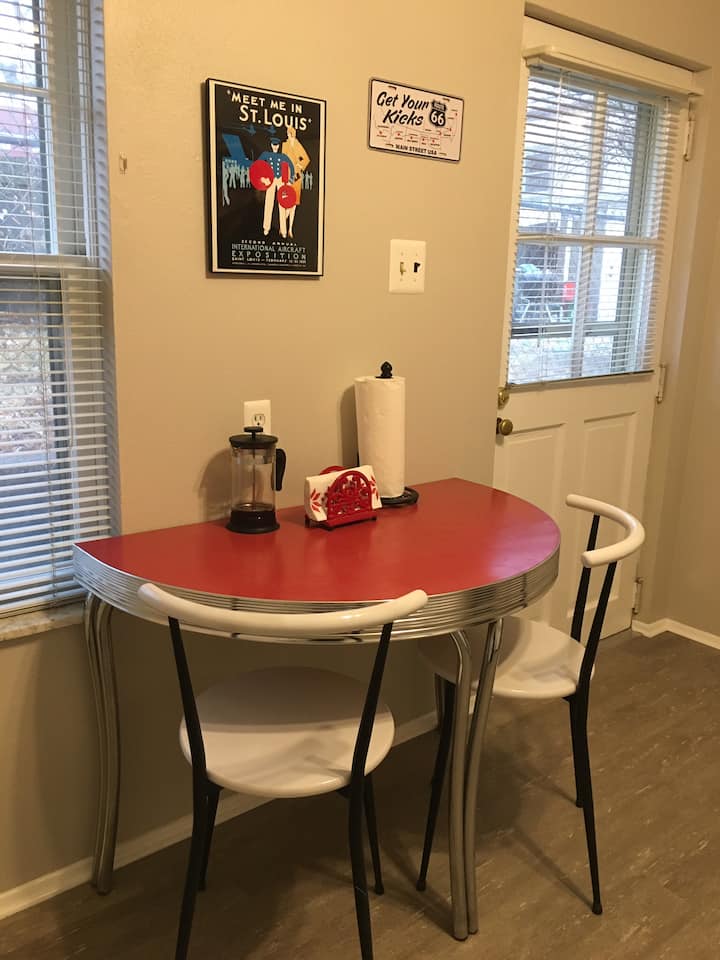 ถนนเงียบสงบใกล้เดอะฮิลล์ (ย่านที่ปลอดภัยที่สุดในเมือง) บ้านหลังเล็กที่ตั้งอยู่หลังบ้านหลักขนาด 275 ตร.ฟุต สองห้อง มีความเป็นส่วนตัวอย่างสมบูรณ์ ห้องครัวที่มีอุปกรณ์ครบครันในห้องหนึ่ง เตียงควีนไซส์สบายสุดๆ เก้าอี้เอนหลัง โต๊ะทำงาน ทีวีพร้อมโรคุในอีกห้อง เดิน 1 ช่วงตึกถึงร้านขายของชำ ร้านอาหาร บาร์ และอื่นๆ บริการซักรีดแบบใช้ร่วมกันเครื่องซักผ้า 2 เครื่องอบผ้า 2 เครื่อง มีที่จอดรถฟรีมากมายริมถนน ขับรถ 2.6 ไมล์ 9 นาทีถึงบาร์นส์ มหาวิทยาลัยเซนต์หลุยส์ 2.6 ไมล์ ขับรถ 10 นาที ขออภัย ไม่อนุญาตให้มีสัตว์เลี้ยง