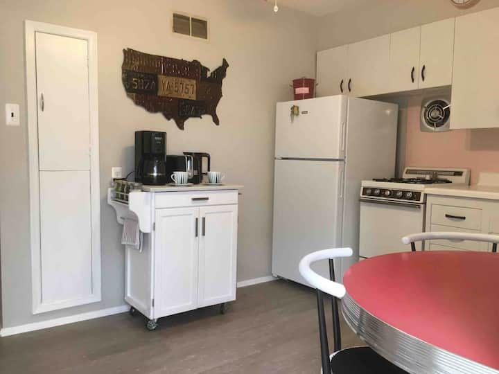 บ้านหลังเล็กมีสิ่งอำนวยความสะดวกครบครันสำหรับการเข้าพักที่ไร้กังวล อยากทำอาหารไหม? เรามีหม้อและกระทะหลากหลายประเภทกระทะพิซซ่าเครื่องปั่นสลัดเครื่องปั่นอุปกรณ์และทุกอย่างที่เราคิดว่าคุณต้องเตรียมอาหาร มีเตาแก๊สวินเทจพร้อมเตาอบ ไมโครเวฟ เตาปิ้งขนมปัง และเครื่องปั่น