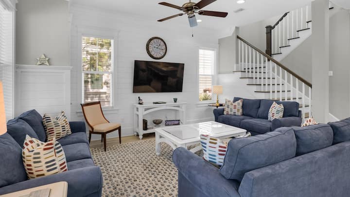 เมื่อคุณเข้ามาใน Sweet Home 30A คุณจะได้รับการต้อนรับด้วยระเบียงหน้าบ้านที่รักที่คุณสามารถเพลิดเพลินได้ตลอดทั้งวัน เมื่อก้าวเข้าสู่ที่พักคุณจะเข้าสู่แปลนบ้านแบบเปิดโล่งพร้อมพื้นที่รับประทานอาหารขนาดใหญ่ที่นั่งเล่นและห้องครัวที่เหมาะสำหรับความบันเทิงทุกประเภท ห้องนั่งเล่นมีพื้นที่กว้างขวางพร้อมที่นั่งเสริมให้จอดได้ทุกเมื่อ (ไม่ต้องพูดถึงโซฟาขนาดควีนไซส์) ห้องรับประทานอาหารรองรับได้สูงสุด 8 ที่นั่งมีเก้าอี้สตูล 4 ตัวที่ Kitchen Island และห้องครัวมีเกาะขนาดใหญ่สำหรับรวมตัวกันในมื้อเช้าหรือเตรียมอาหาร ออกจากพื้นที่สำหรับครอบครัว/ห้องนั่งเล่นนี้โดยตรงเป็นห้องอาบน้ำครึ่งหนึ่งที่ตั้งอยู่ในทำเลที่สะดวก