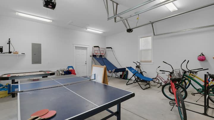 ห้องเล่นเกมพร้อมปิงปองแอร์ฮอกกี้บาสเกตบอล Pop-A-Shot จักรยานและอื่นๆ