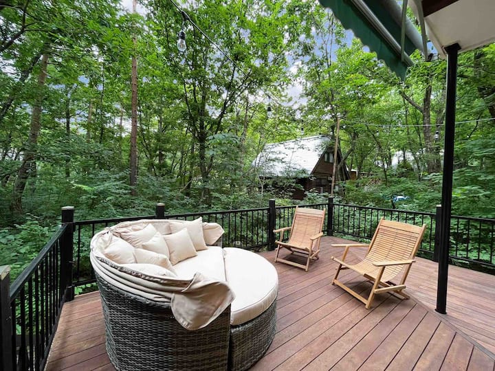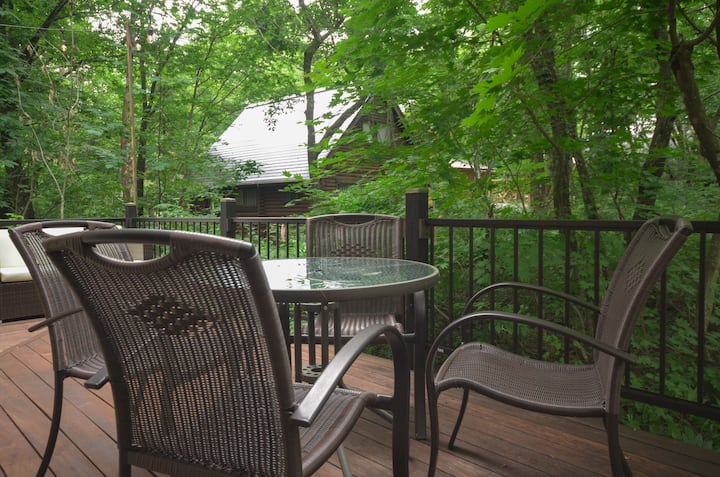 รอบๆด้านข้างและด้านหลังของคอทเทจเป็นดาดฟ้าที่สวยงามที่คุณสามารถใช้เวลาทั้งวันและช่วงเย็นในช่วงเดือนที่อากาศอบอุ่น มีโต๊ะรับประทานอาหารขนาดใหญ่และเก้าอี้ที่รองรับได้สูงสุด 8 คนสำหรับเพลิดเพลินกับอาหารเช้าหรือบาร์บีคิวสำหรับครอบครัว โซฟาและเก้าอี้นอนที่สง่างามมีพื้นที่ที่สะดวกสบายสำหรับการพักผ่อนกลางแจ้ง