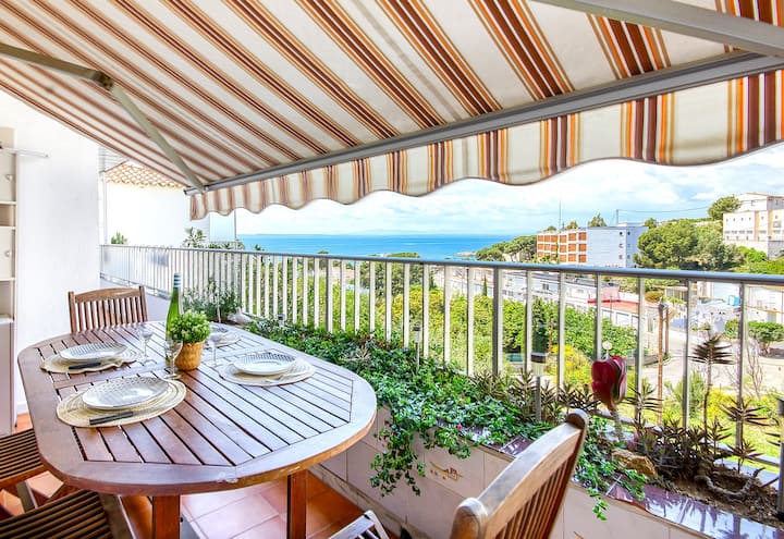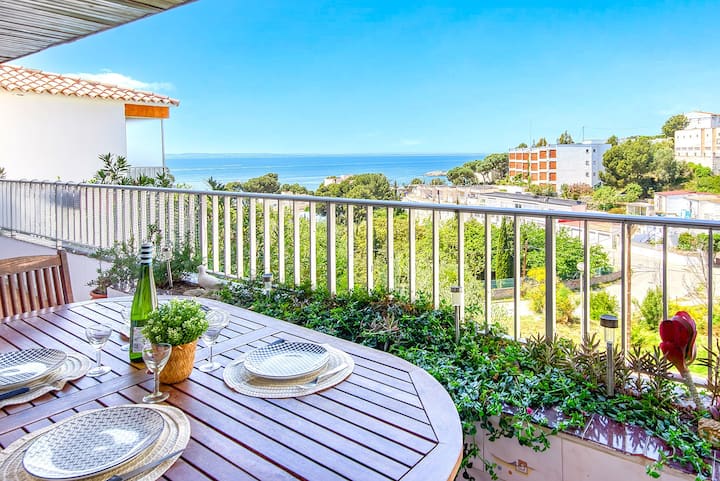 อพาร์ทเมนท์วิวทะเลพร้อมระเบียงขนาดใหญ่ 5 นาทีถึงชายหาด