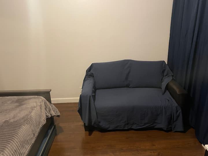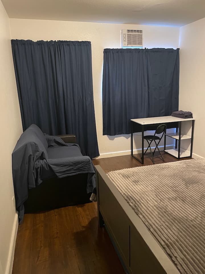 ห้องนี้เป็นห้องส่วนตัวในบ้านที่มีห้องน้ำรวม มีห้องครัวให้ใช้หากต้องการ มีเตียงควีนไซส์ 1 เตียงและเตียงแฝดที่สามารถดึงออกมาจากด้านล่างได้ นอกจากนี้ยังมีโต๊ะทำงานโซฟาขนาดเล็กและที่จอดรถ 1 คันในทางเข้าบ้านแต่ถ้าคุณแจ้งให้เราทราบล่วงหน้าเท่านั้นว่าคุณจะต้องใช้มัน