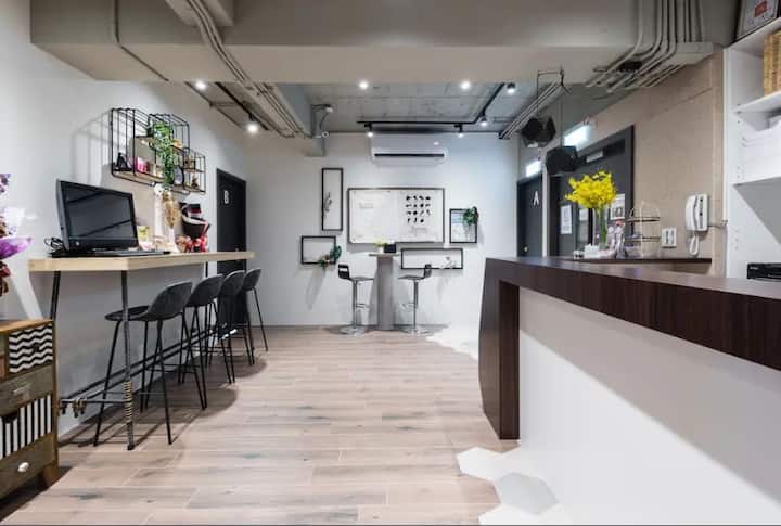 การคมนาคมสะดวกและรายล้อมไปด้วยอาหารรสเลิศ สไตล์การออกแบบหน้าต่างบานใหญ่ทำให้ห้องพักมีความรู้สึกสบายๆและสว่างไสวเหมือนคาเฟ่ ห้องพักสว่างและสะอาด สามสาวน้องสาวที่อายุน้อยและเป็นกันเองเป็นเจ้าของที่พักนี้เอง ที่พักที่ดีที่สุดในไทเป
