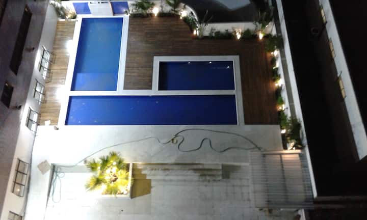 นี่เป็นหนึ่งในที่พักไม่กี่แห่งของย่านนี้ที่มีสระว่ายน้ำ