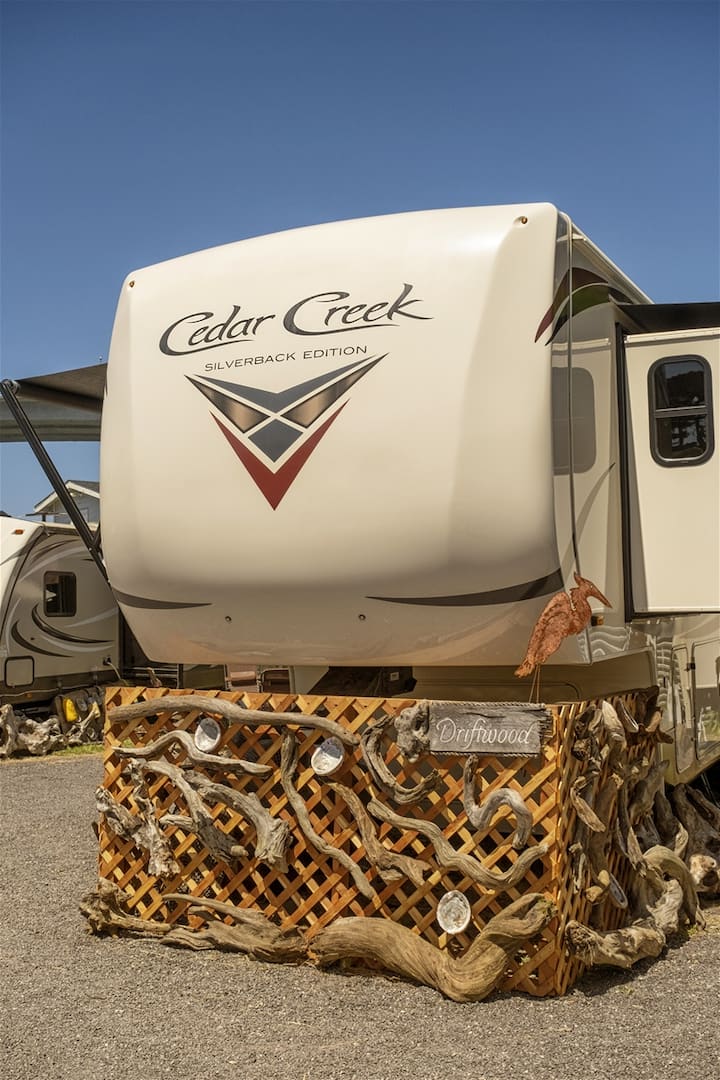 ดริฟท์วูดเป็นรถบ้านล้อที่ 5 มีห้องครัวและพื้นที่นั่งเล่นกว้างขวางเตียงควีนไซส์ทั้งในห้องนอนใหญ่และพื้นที่นั่งเล่นเกือบ 330 ตารางฟุต เพดานสูงเพิ่มความรู้สึกเปิดกว้าง ได้รับความสนใจเป็นพิเศษจากพื้นที่กลางแจ้งของการอัพเกรดนี้เพื่อให้การเยี่ยมชมของคุณเพลิดเพลินยิ่งขึ้นไม่ว่าจะภายในหรือภายนอก