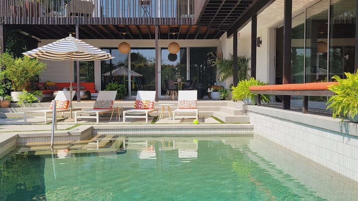 บ้านพร้อมสระว่ายน้ำทันสมัย สนามหญ้าหลังบ้านเขียวชอุ่ม เดินไปถึงโรดีโอไดรฟ์
