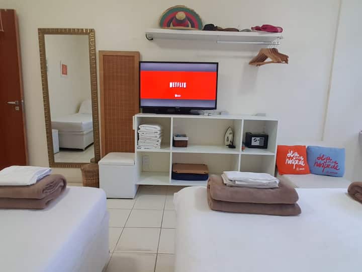 Foi montado com muito carinho, pensando sempre em como gostaria de ser recebida e o que seria importante e necessário ter no apartamento. Agora, mesmo depois de pronto, estamos sempre procurando melhorar alguma coisa, levando sempre em conta o que as pessoas que já passaram por ele julgam necessário!