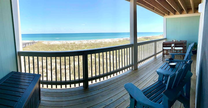 ลานบ้าน!: ส่วนที่เราชอบที่สุดของบ้านคือลานขนาดใหญ่! มีทั้งห้องนั่งเล่นและห้องนอนใหญ่ที่มองเห็นวิวมหาสมุทรแอตแลนติก โชคดีที่ห้องพักหันหน้าไปทางทิศตะวันออกดังนั้นแสงแดดจะผ่านช่วงเช้าตรู่ในช่วงกลางฤดูร้อนดังนั้นแม้ในวันที่อากาศร้อนกว่านี้ก็ช่วยให้คุณเพลิดเพลินไปกับดาดฟ้าในความสะดวกสบายของความร่มรื่น ลานบ้านตกแต่งด้วยชุดรับประทานอาหารสูง 4 คน Acacia Wood เหมาะสำหรับมื้ออาหารหรือเล่นเกมไพ่กับครอบครัว นอกจากนี้ยังมีเก้าอี้ Adirondack ชั้นสูง 2 ตัวพร้อมโต๊ะข้างสำหรับกาแฟตอนเช้าตรู่และดูปลาโลมารวมถึงที่นั่งแบบม้านั่ง