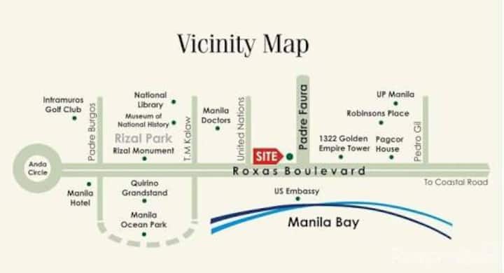 ที่พักนี้ตั้งอยู่ที่ Grand Riviera Suites ซึ่งเป็นคอนโดมิเนียมตั้งอยู่ใน Padre Faura St. Roxas Blvd มะนิลา อยู่ตรงข้ามสถานทูตสหรัฐอเมริกาและ 5 นาทีถึงโรบินสันเพลสมะนิลา